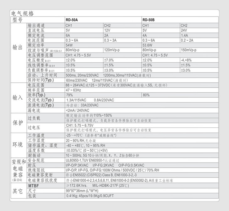 平均无故障时间 ≥17.26万小时MIL-HDBK-217F(25℃)
