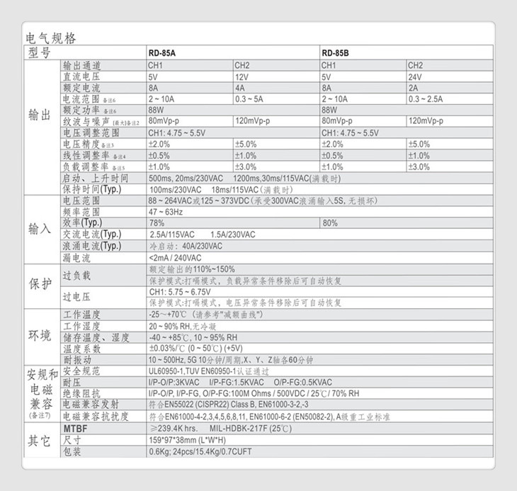 输入电压范围 88~264VAC/120~373VDC(承受5秒钟300VAC高压输入不损坏)