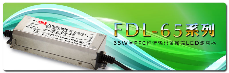 威廉体育新推出一款65W恒流输出的LED电源驱动器~FDL-65系列,本系列内建PFC功能、完整的保护机制、-40~+90℃宽工作温度范围(依外壳温度);采用金属外壳且内部灌满导热矽胶,因此可达IP65防护等级及5G抗震能力,搭配精简化的尺寸设计(仅151x53x31.5mm)及达90%的高工作效率,十分适合户外LED照明灯具的应用,例如泛光灯、公园灯、洗墙灯及建筑装饰用LED灯具等。