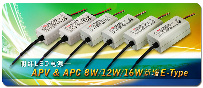 威廉体育LED电源 : APV & APC 8W/12W/16W新增E-Type